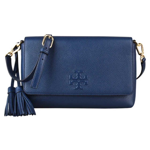 【TORY BURCH】THEA荔枝紋皮革浮雕LOGO斜背包(海軍藍)
