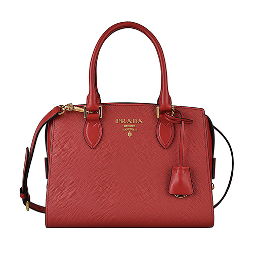 購物網 精品/飾品 首頁》 國際精品包 》 PRADA 品牌(A~Z)》【PRADA 普拉達】PRADA SAFFIANO SOFT CALF經典浮雕LOGO防刮牛皮拉鍊手提斜背包(紅)